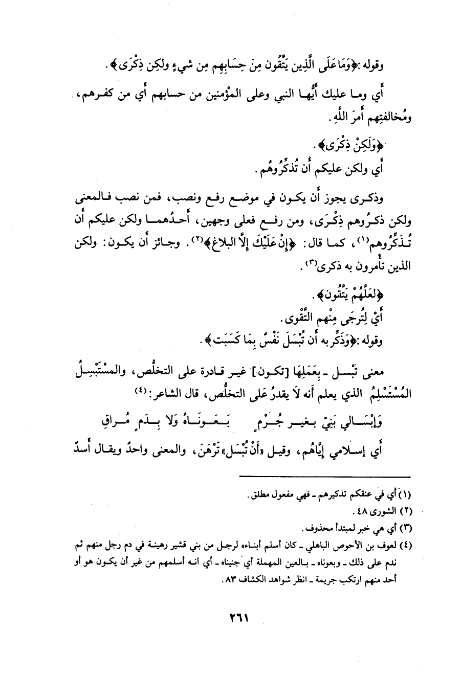 وقوله: (وَمَا عَلَى الَّذِينَ يَتَّقُونَ مِنْ حِسَابِهِمْ مِنْ شَيْءٍ وَلَكِنْ ذِكْرَى لَعَلَّهُمْ يَتَّقُونَ (69)