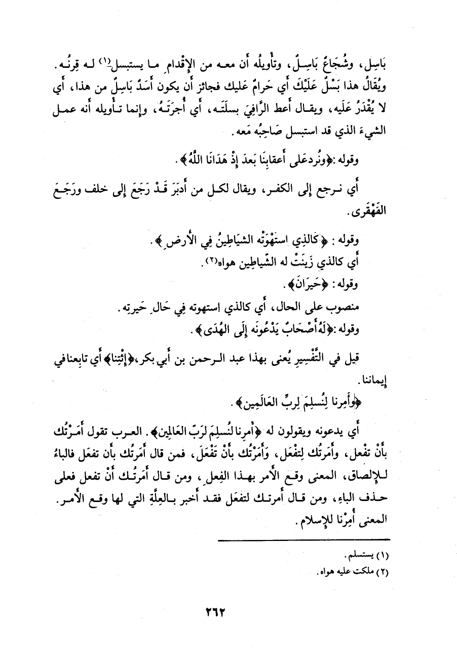 وقوله: (قُلْ أَنَدْعُو مِنْ دُونِ اللَّهِ مَا لَا يَنْفَعُنَا وَلَا يَضُرُّنَا وَنُرَدُّ عَلَى أَعْقَابِنَا بَعْدَ إِذْ هَدَانَا اللَّهُ كَالَّذِي اسْتَهْوَتْهُ الشَّيَاطِينُ فِي الْأَرْضِ حَيْرَانَ لَهُ أَصْحَابٌ يَدْعُونَهُ إِلَى الْهُدَى ائْتِنَا قُلْ إِنَّ هُدَى اللَّهِ هُوَ الْهُدَى وَأُمِرْنَا لِنُسْلِمَ لِرَبِّ الْعَالَمِينَ (71)