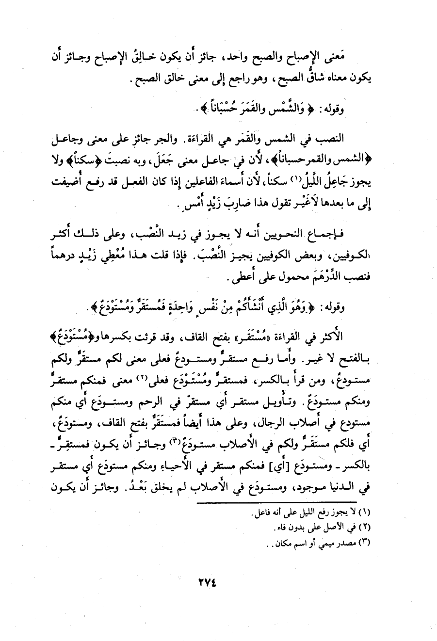 بالكسر - ومستودعَ أي: فمنكم مستقر في الأحياءِ ومنكم مستودعَ أي مستقر في الدنيا موجود، ومستودَع في الأصلاب لم يخلق بعْدُ.