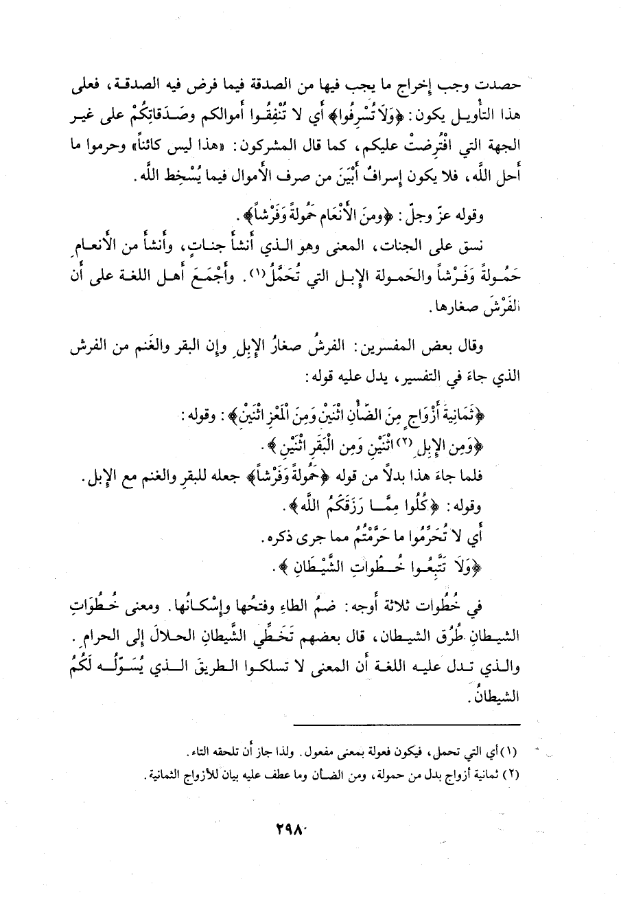 وقوله عزَّ وجلَّ: (وَمِنَ الْأَنْعَامِ حَمُولَةً وَفَرْشًا كُلُوا مِمَّا رَزَقَكُمُ اللَّهُ وَلَا تَتَّبِعُوا خُطُوَاتِ الشَّيْطَانِ إِنَّهُ لَكُمْ عَدُوٌّ مُبِينٌ (142)