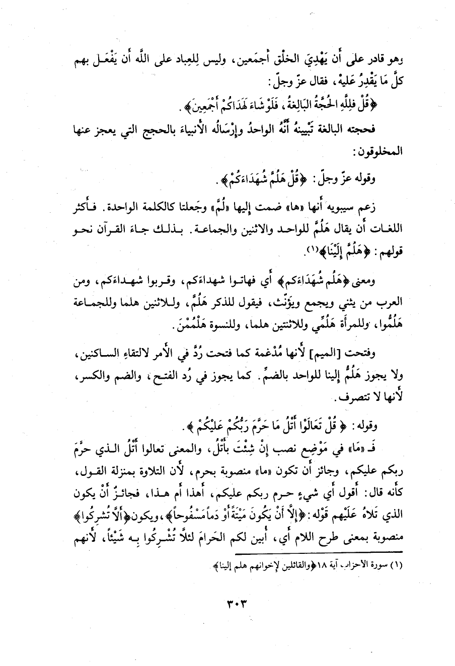 ومعنى (هَلُمَّ شُهَدَاءَكُمُ) أي فهاتوا شهداءَكم، وقربوا شهداءَكم، ومن