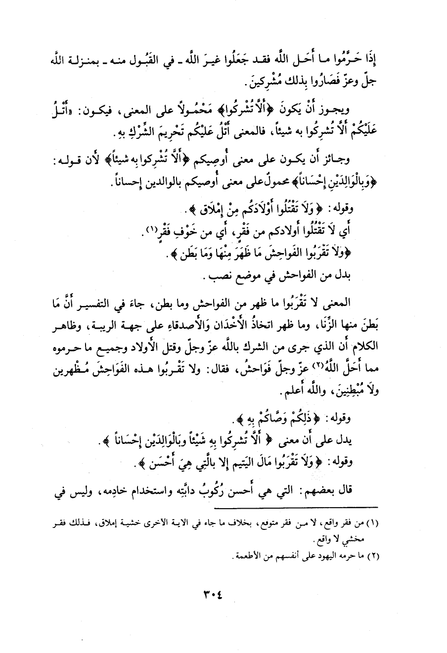 وجائز أن يكون على معنى أوصِيكم (أَلَّا تُشْرِكُوا بِه شيئاً)