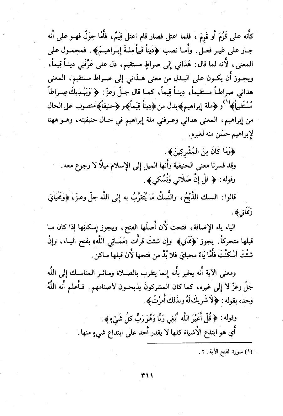 وأما نصب (دِينًا قِيَمًا مِلَّةَ إِبْرَاهِيمَ حَنِيفًا).