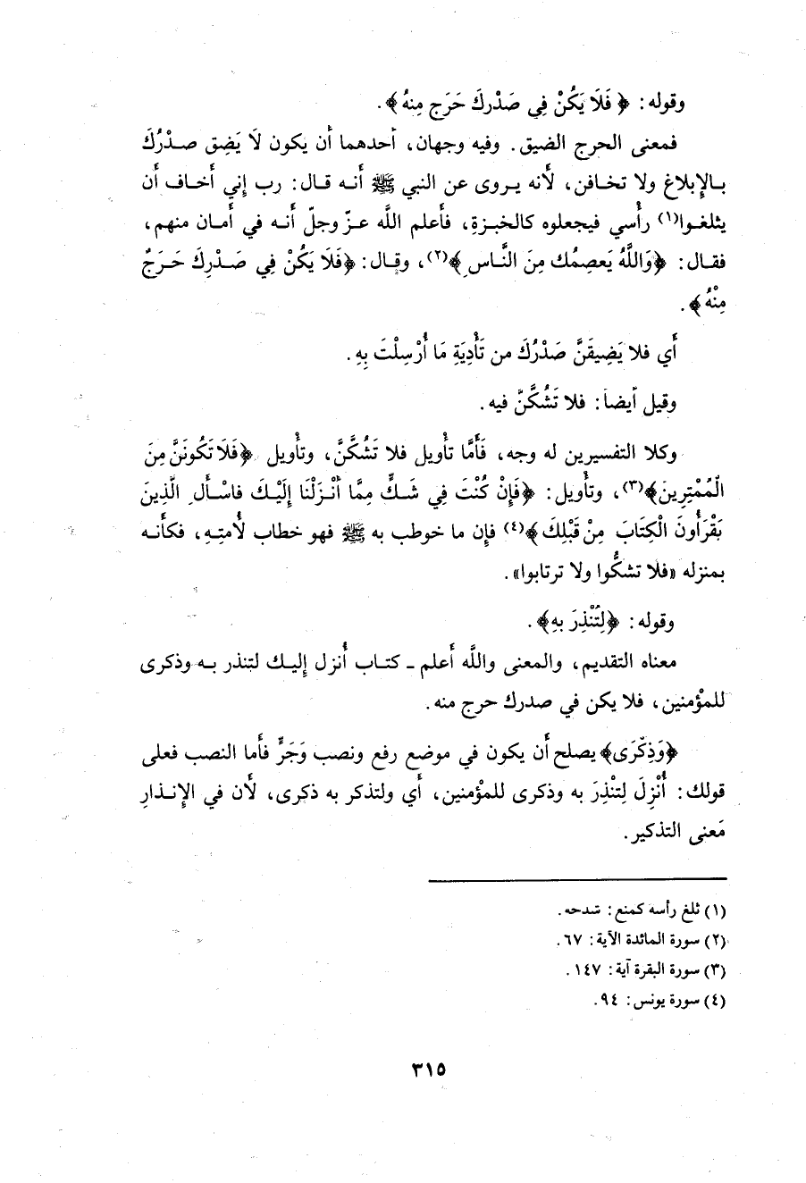 وقوله: (كِتَابٌ أُنْزِلَ إِلَيْكَ فَلَا يَكُنْ فِي صَدْرِكَ حَرَجٌ مِنْهُ لِتُنْذِرَ بِهِ وَذِكْرَى لِلْمُؤْمِنِينَ (2)