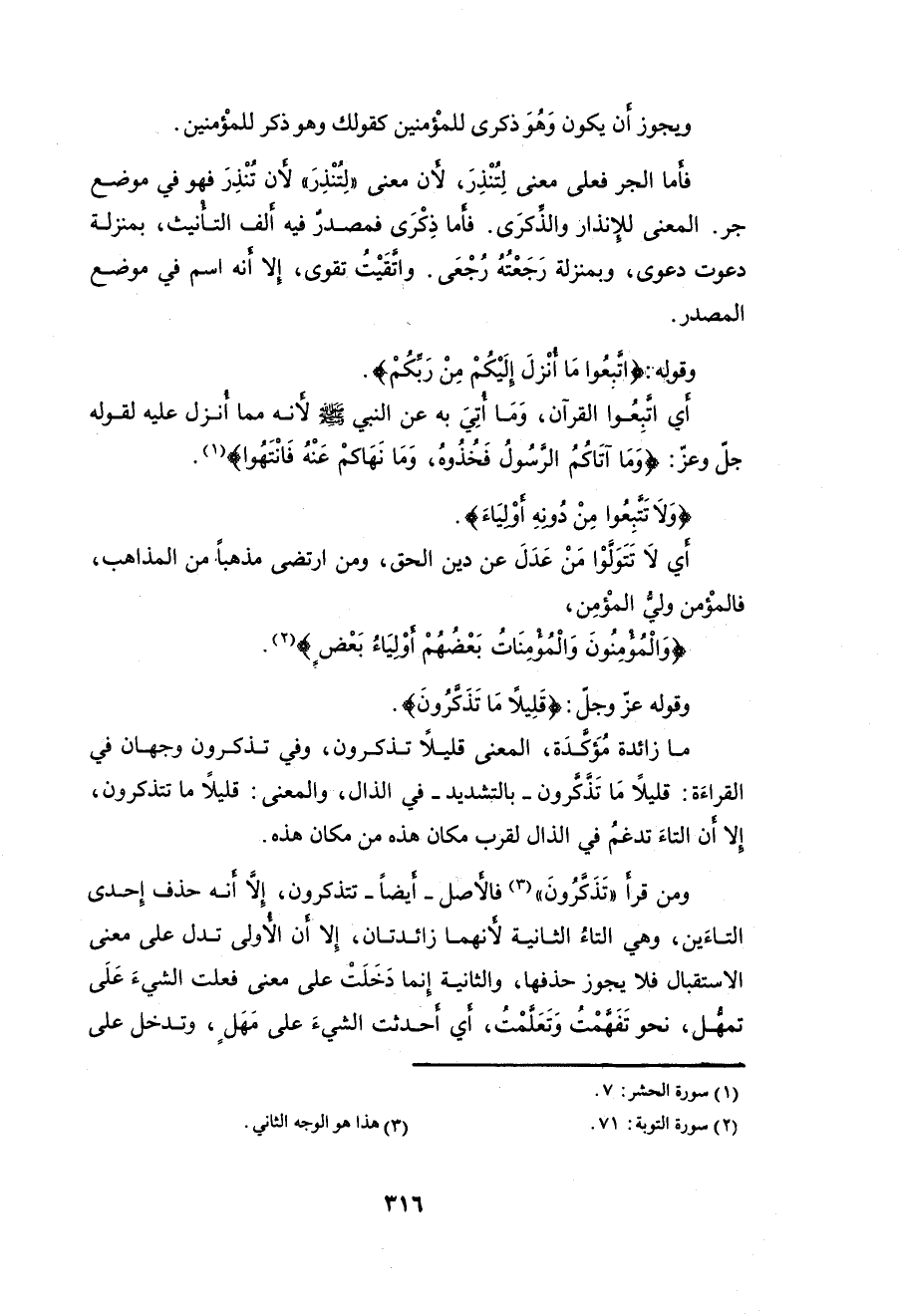 ومن قرأ (تَذَكَّرُونَ) فالأصل - أيضاً - تتذكرون، إلَّا أنَّه حذف إِحدى