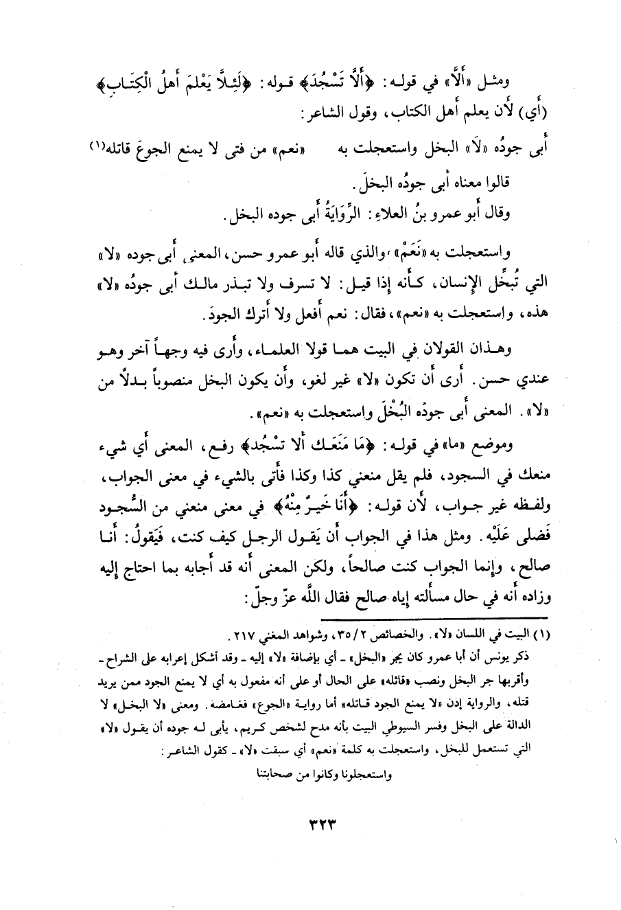 واستعجلت به " نَعَمْ "، والذي قاله أبو عمرو حسن، المعنى أبى جوده " لا "