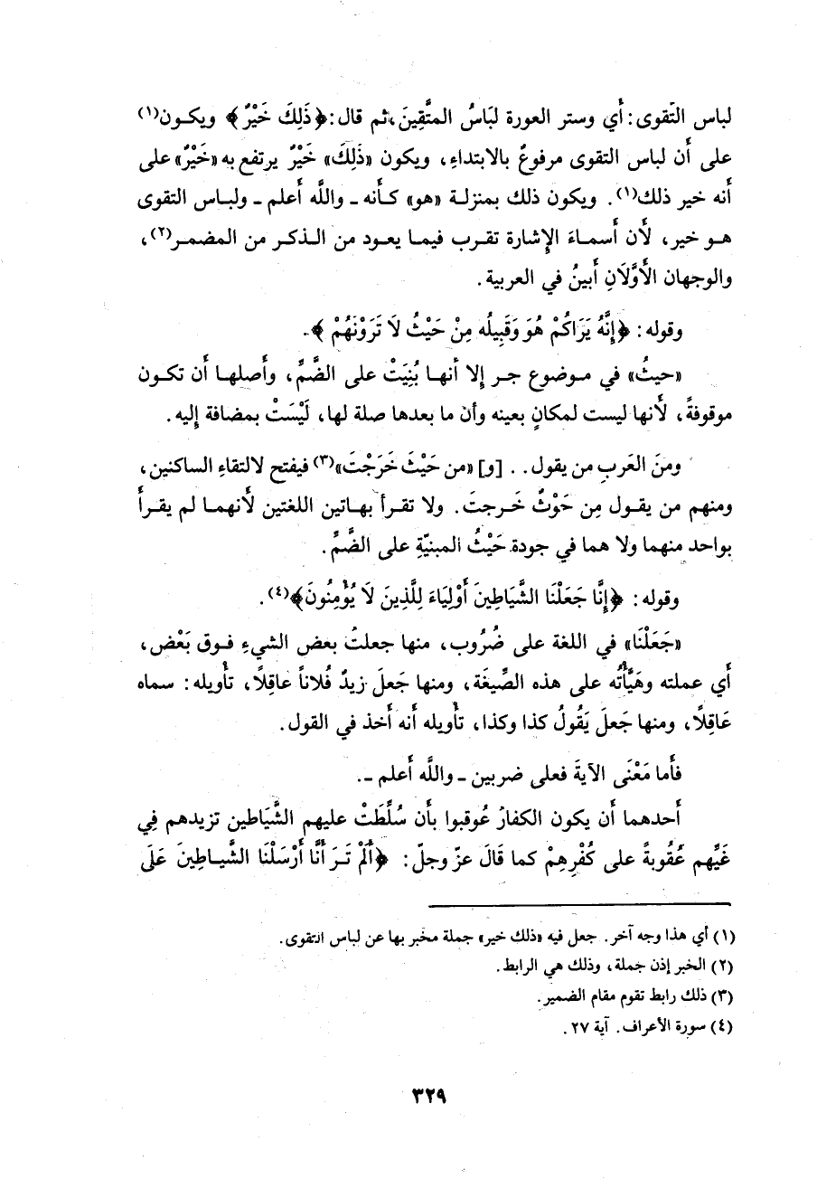 وقوله: (يَا بَنِي آدَمَ لَا يَفْتِنَنَّكُمُ الشَّيْطَانُ كَمَا أَخْرَجَ أَبَوَيْكُمْ مِنَ الْجَنَّةِ يَنْزِعُ عَنْهُمَا لِبَاسَهُمَا لِيُرِيَهُمَا سَوْءَاتِهِمَا إِنَّهُ يَرَاكُمْ هُوَ وَقَبِيلُهُ مِنْ حَيْثُ لَا تَرَوْنَهُمْ إِنَّا جَعَلْنَا الشَّيَاطِينَ أَوْلِيَاءَ لِلَّذِينَ لَا يُؤْمِنُونَ (27)