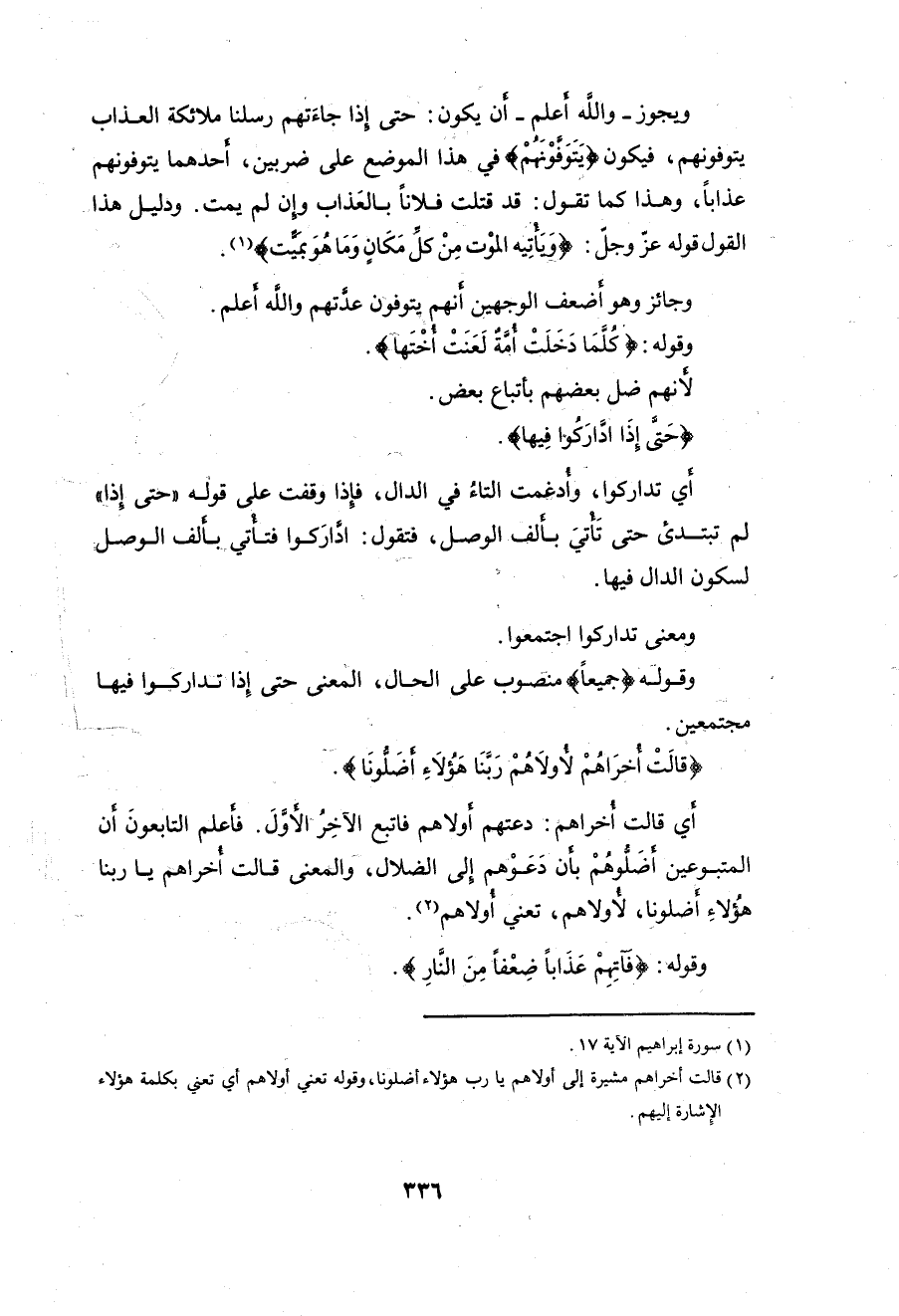 وقوله: (قَالَ ادْخُلُوا فِي أُمَمٍ قَدْ خَلَتْ مِنْ قَبْلِكُمْ مِنَ الْجِنِّ وَالْإِنْسِ فِي النَّارِ كُلَّمَا دَخَلَتْ أُمَّةٌ لَعَنَتْ أُخْتَهَا حَتَّى إِذَا ادَّارَكُوا فِيهَا جَمِيعًا قَالَتْ أُخْرَاهُمْ لِأُولَاهُمْ رَبَّنَا هَؤُلَاءِ أَضَلُّونَا فَآتِهِمْ عَذَابًا ضِعْفًا مِنَ النَّارِ قَالَ لِكُلٍّ ضِعْفٌ وَلَكِنْ لَا تَعْلَمُونَ (38)