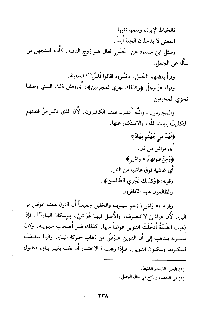 وقوله " غَوَاشٍ) زعم سيبويه والخليل جميعاً أن النون هنا عوض من