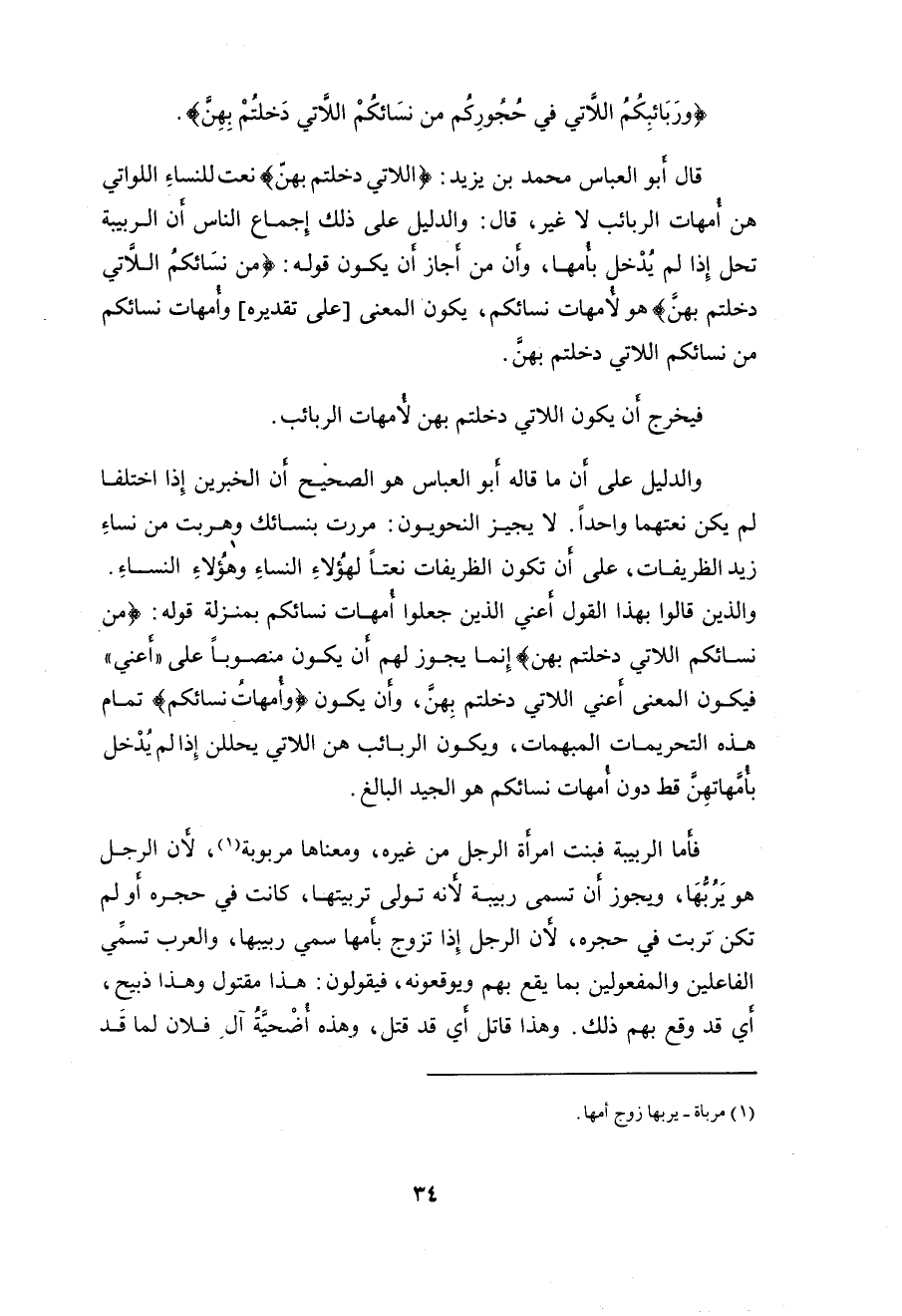قال أبو العباس محمد بن يزيد: (اللَّاتِي دَخَلْتُمْ بِهِنَّ) نعت للنساءِ اللواتي