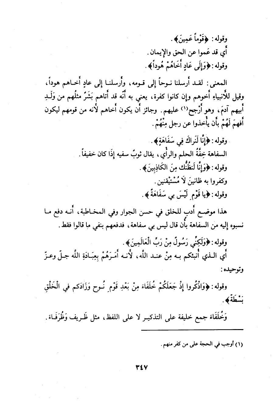 وقوله: (قَالَ يَا قَوْمِ لَيْسَ بِي سَفَاهَةٌ وَلَكِنِّي رَسُولٌ مِنْ رَبِّ الْعَالَمِينَ (67)