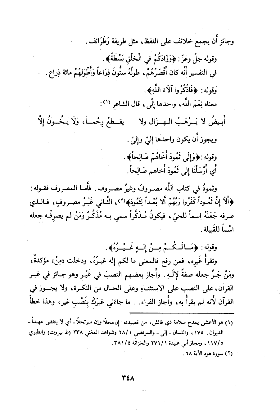 فأما المصروف فقوله: (ألَا إن ثَمُوداً كَفَرُوا رَبَّهُمْ ألا بُعْداً لِثَمُود).