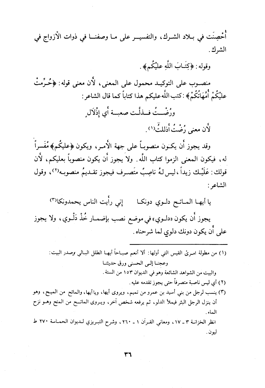 وقد يجوز أن يكون منصوباً على جهة الأمر، ويكون (عليكُم) مفَسراً