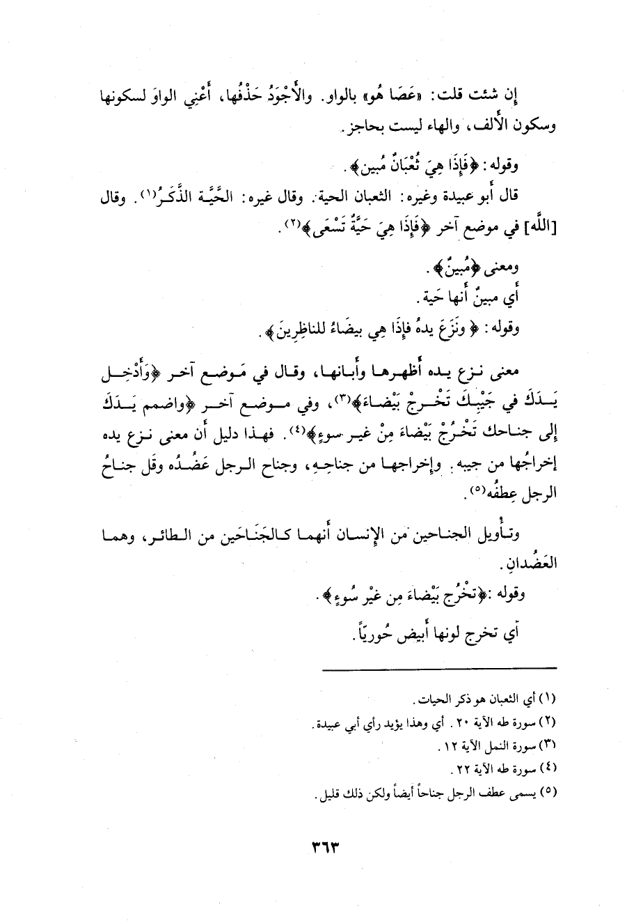 وقال في مَوضع آخر (وَأدْخِل يَدَكَ في جَيْبِكَ تَخْرجْ بَيْضاءَ).
