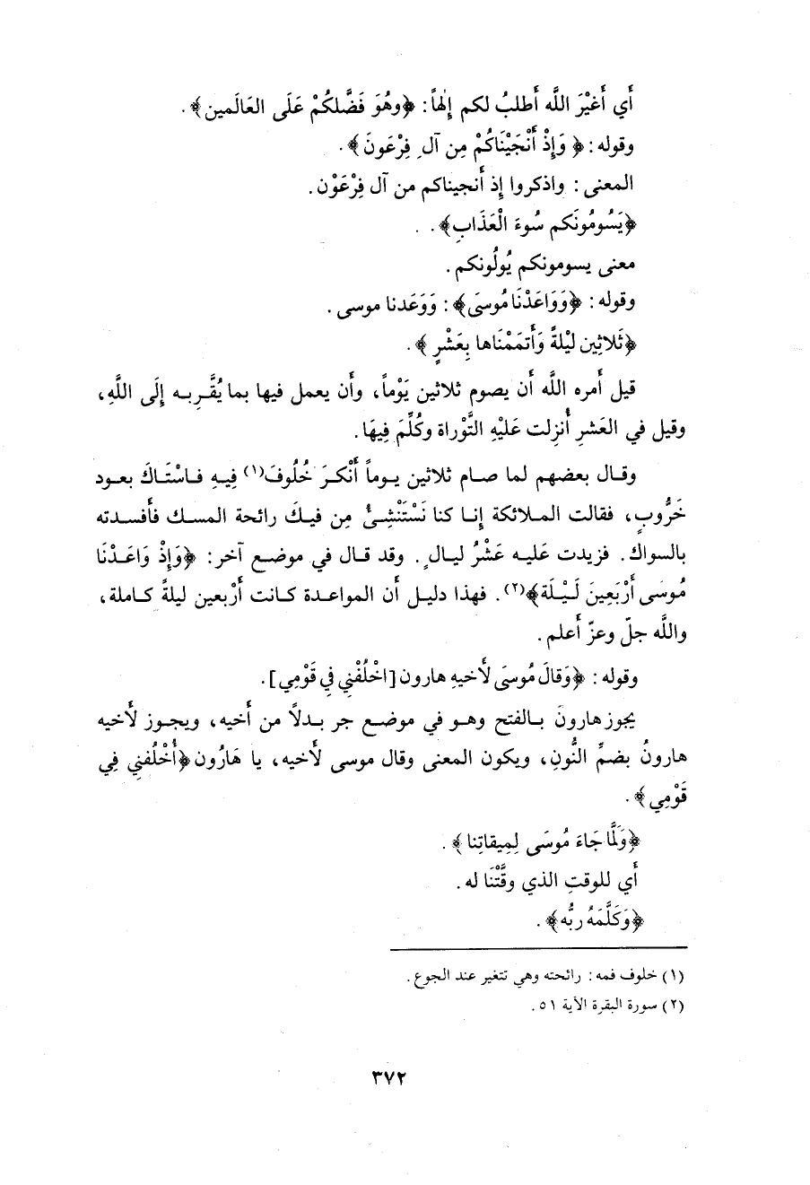 وقوله: (وَوَاعَدْنَا مُوسَى ثَلَاثِينَ لَيْلَةً وَأَتْمَمْنَاهَا بِعَشْرٍ فَتَمَّ مِيقَاتُ رَبِّهِ أَرْبَعِينَ لَيْلَةً وَقَالَ مُوسَى لِأَخِيهِ هَارُونَ اخْلُفْنِي فِي قَوْمِي وَأَصْلِحْ وَلَا تَتَّبِعْ سَبِيلَ الْمُفْسِدِينَ (142)