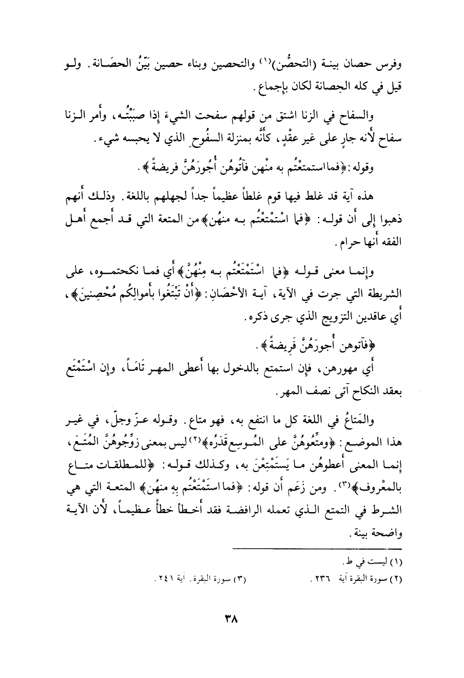 وذلك أنهم ذهبوا إِلى أن قوله: (فَمَا اسْتَمْتَعْتُمْ بِهِ مِنْهُنَّ) من المتعة التي قد أجمع أهل الفقه أنها حرام.