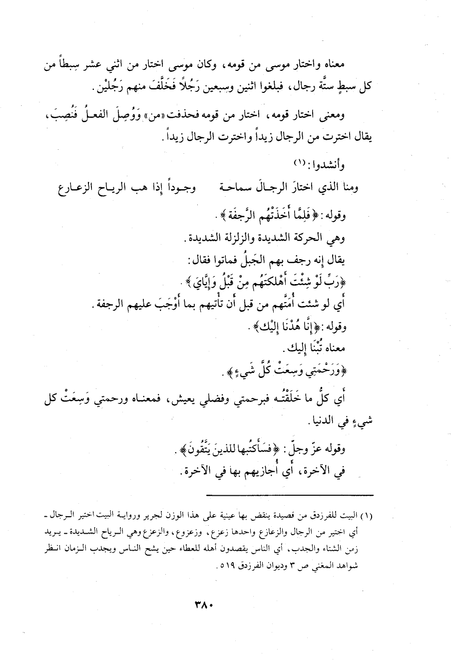 ومعنى اختار قومه، اختار من قومه فحذفت " من " وَوُصِلَ الفعلُ فَنُصِبَ.