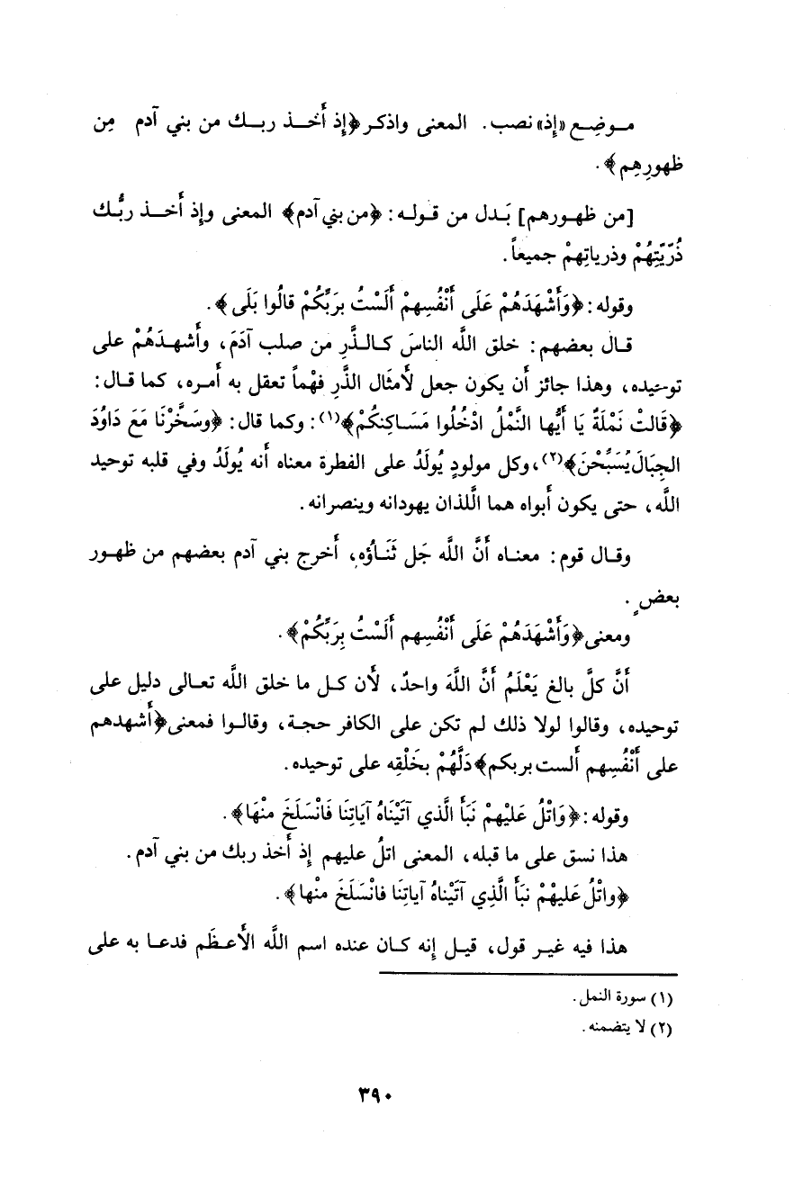 وقوله: (وَأَشْهَدَهُمْ عَلَى أَنْفُسِهِمْ أَلَسْتُ بِرَبِّكُمْ قَالُوا بَلَى).