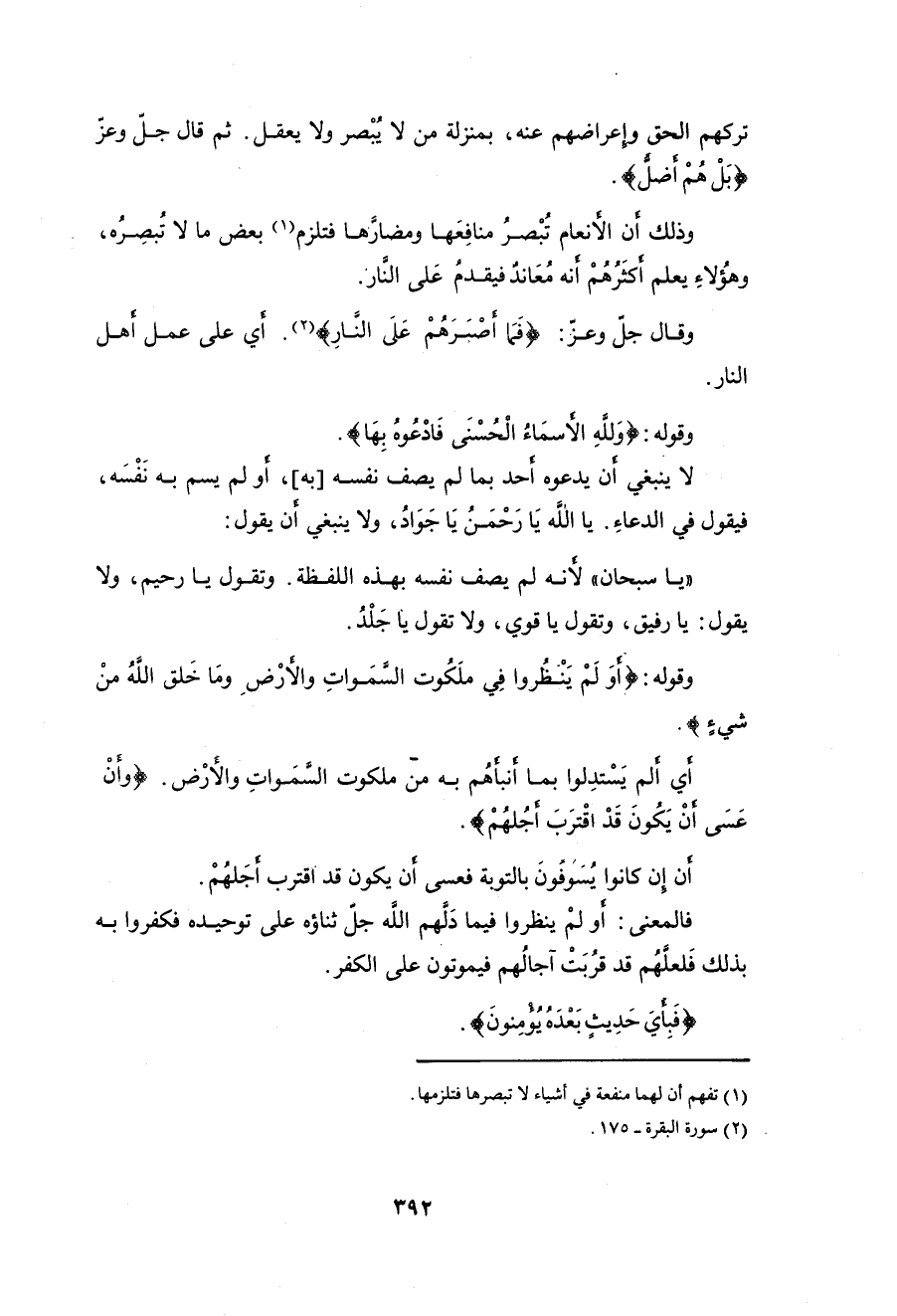 وقوله: (أَوَلَمْ يَنْظُرُوا فِي مَلَكُوتِ السَّمَاوَاتِ وَالْأَرْضِ وَمَا خَلَقَ اللَّهُ مِنْ شَيْءٍ وَأَنْ عَسَى أَنْ يَكُونَ قَدِ اقْتَرَبَ أَجَلُهُمْ فَبِأَيِّ حَدِيثٍ بَعْدَهُ يُؤْمِنُونَ (185)