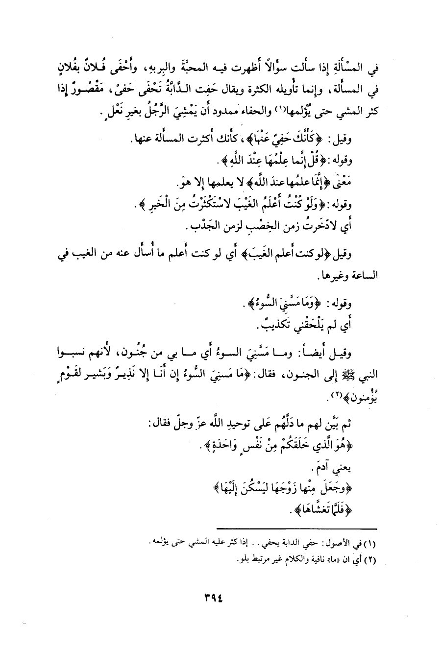 في المسألة، وإِنما تأويله الكثرة ويقال حَفِت الدَّابَّةُ تَحْفَى حَفىً، مَقْصُور إذا