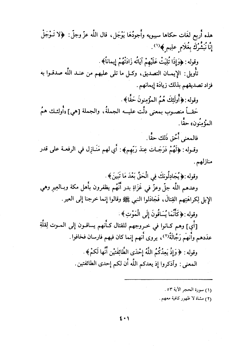 وقوله: (أُولَئِكَ هُمُ الْمُؤْمِنُونَ حَقًّا لَهُمْ دَرَجَاتٌ عِنْدَ رَبِّهِمْ وَمَغْفِرَةٌ وَرِزْقٌ كَرِيمٌ (4)