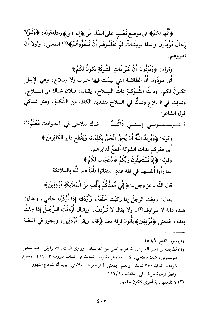 بعده، فمعنى (مُرْدِفِين) يأتون فرقة بعد فِرْقة، ويقرأ مُرْدَفِين، ويجوز في اللغة