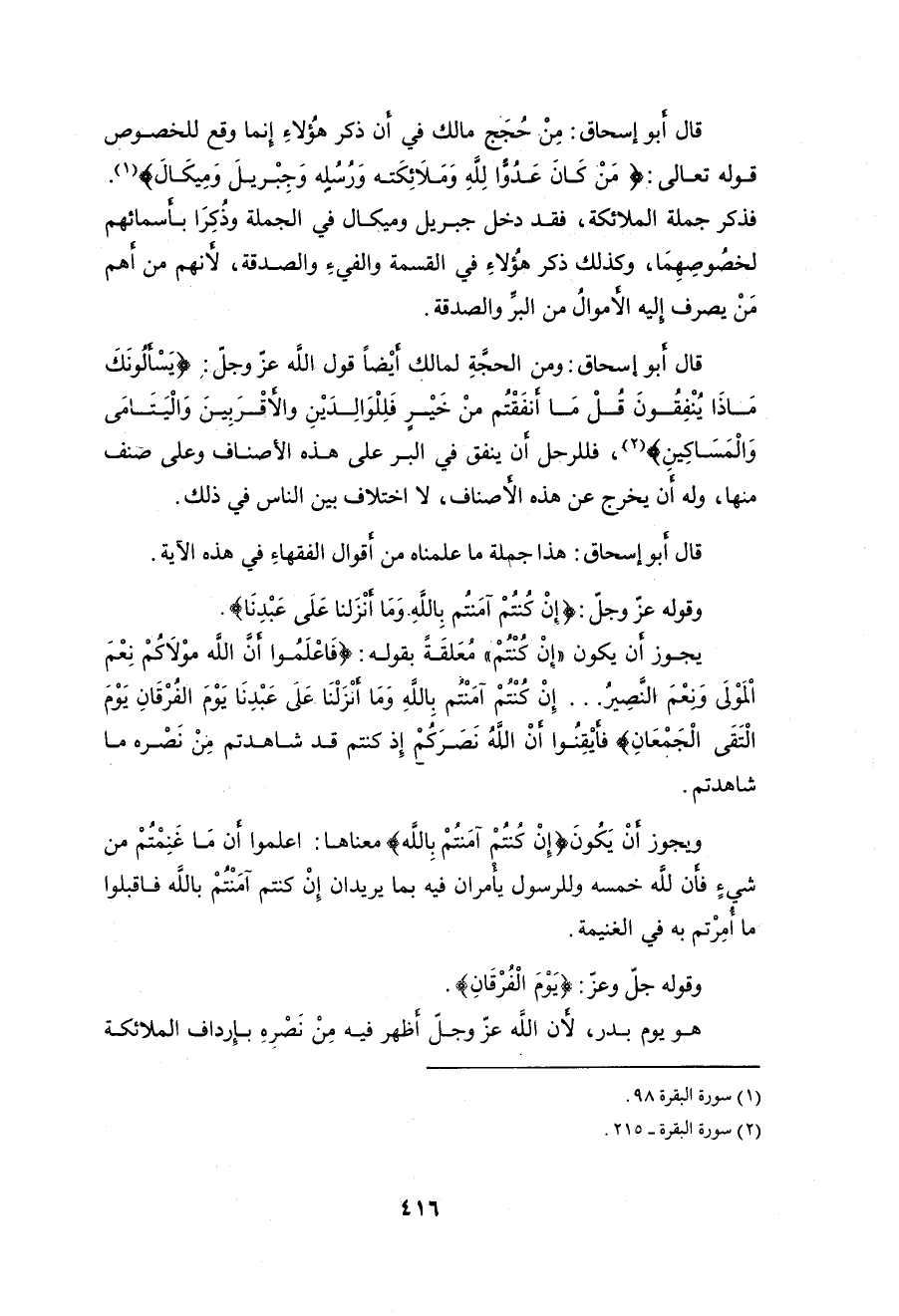 قال أبو إسحاق: ومن الحجةِ لمالك أيضاً قول الله عزَّ وجلَّ: