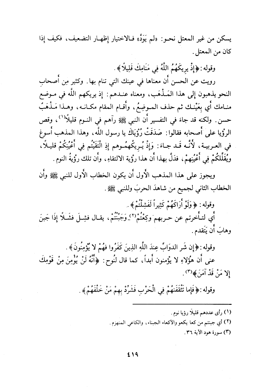 ومعناه عندهم: إِذ يريكهم الله في موضع منامك أي بِعَيْنك ثم حذف الموضِعُ، وأقام المقام مكانه، وهذا مَذْهَبٌ حسن.