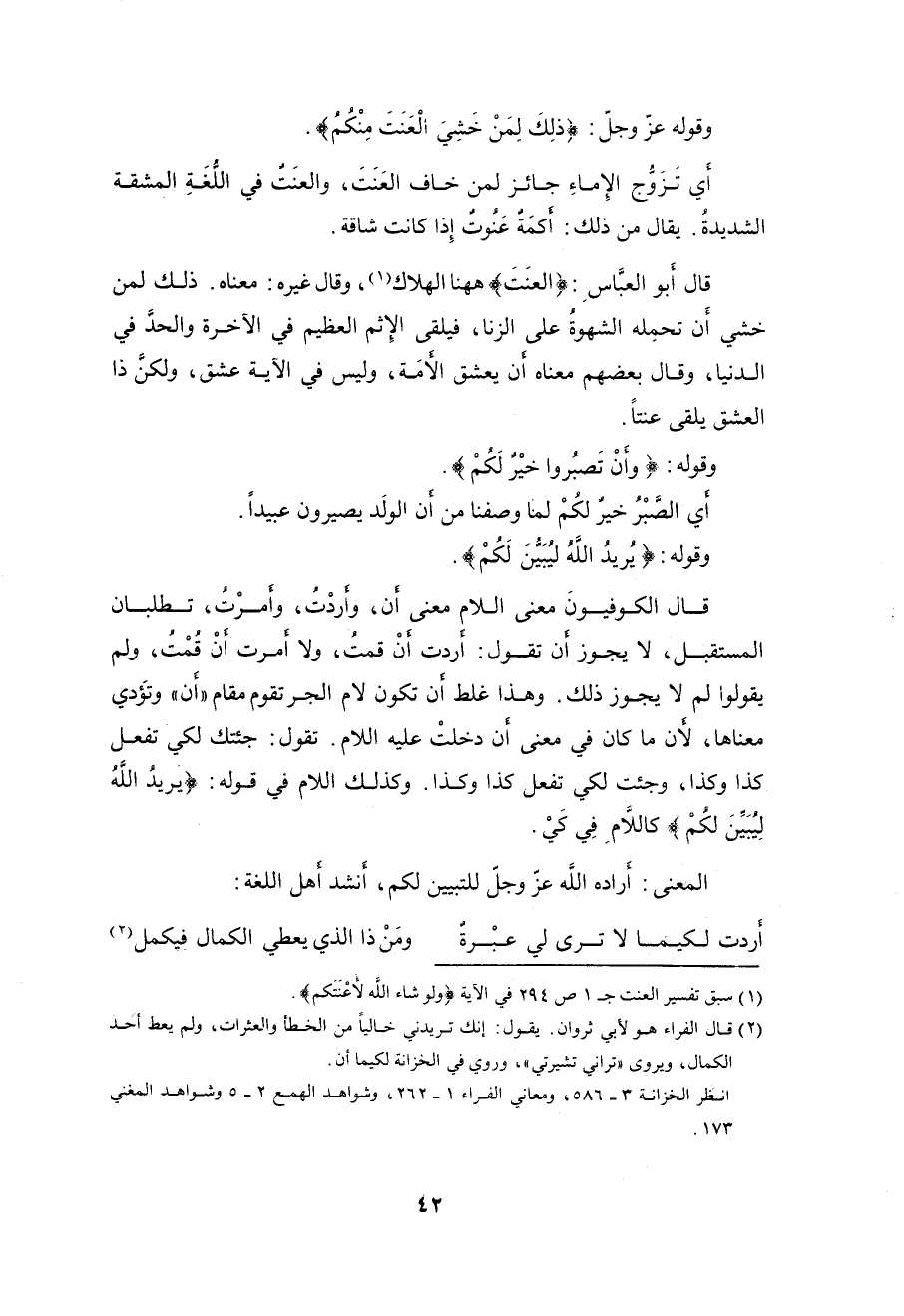 وقوله عزَّ وجلَّ: (ذَلِكَ لِمَنْ خَشِيَ الْعَنَتَ مِنْكُمْ).
