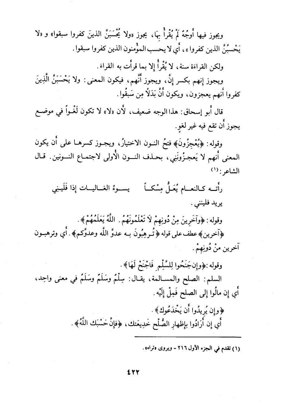 ويجوز فيها أوجُهٌ لَم يُقْرأ بِهَا، يجوز " ولا يُحْسَبَنَّ الذينَ كفروا سبقوا "