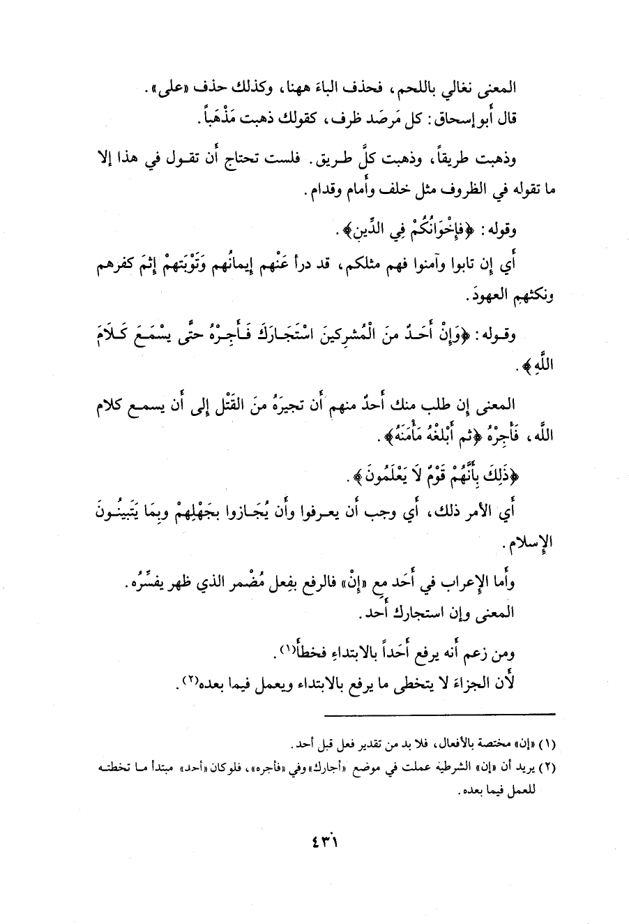 وقوله: (وَإِنْ أَحَدٌ مِنَ الْمُشْرِكِينَ اسْتَجَارَكَ فَأَجِرْهُ حَتَّى يَسْمَعَ كَلَامَ اللَّهِ ثُمَّ أَبْلِغْهُ مَأْمَنَهُ ذَلِكَ بِأَنَّهُمْ قَوْمٌ لَا يَعْلَمُونَ (6)