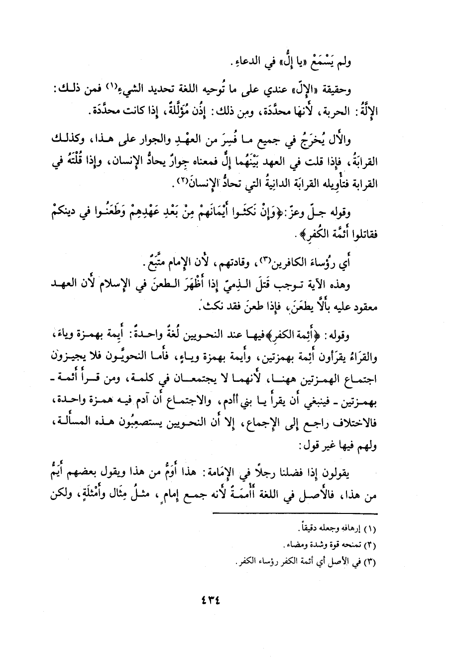 وقوله: (أَئِمَّةَ الْكُفْرِ) فيها عند النحويين لُغة واحدة: أيمة بهمزة وياء