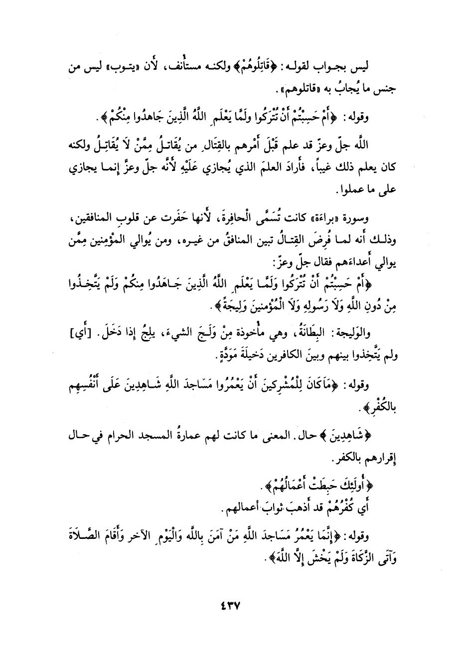 وقوله: (مَا كَانَ لِلْمُشْرِكِينَ أَنْ يَعْمُرُوا مَسَاجِدَ اللَّهِ شَاهِدِينَ عَلَى أَنْفُسِهِمْ بِالْكُفْرِ أُولَئِكَ حَبِطَتْ أَعْمَالُهُمْ وَفِي النَّارِ هُمْ خَالِدُونَ (17)