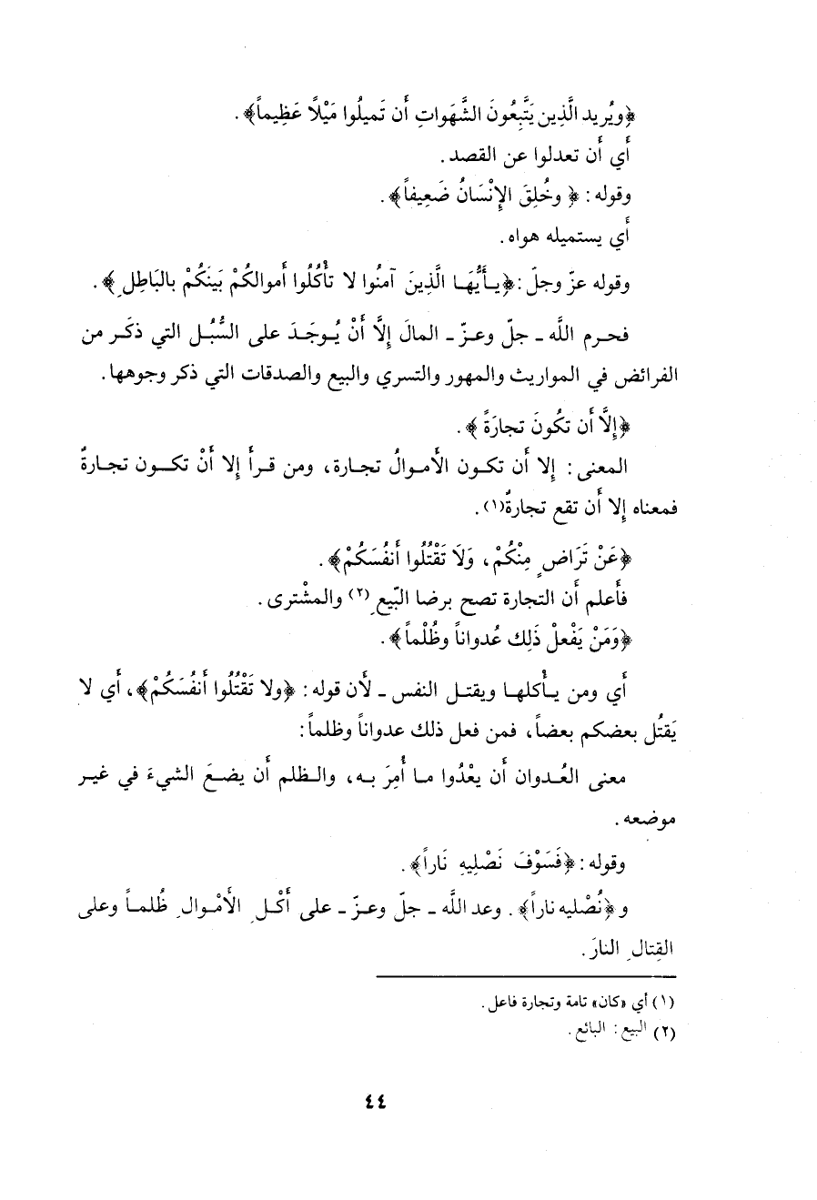 وقوله عزَّ وجلَّ: (يَا أَيُّهَا الَّذِينَ آمَنُوا لَا تَأْكُلُوا أَمْوَالَكُمْ بَيْنَكُمْ بِالْبَاطِلِ إِلَّا أَنْ تَكُونَ تِجَارَةً عَنْ تَرَاضٍ مِنْكُمْ وَلَا تَقْتُلُوا أَنْفُسَكُمْ إِنَّ اللَّهَ كَانَ بِكُمْ رَحِيمًا (29)