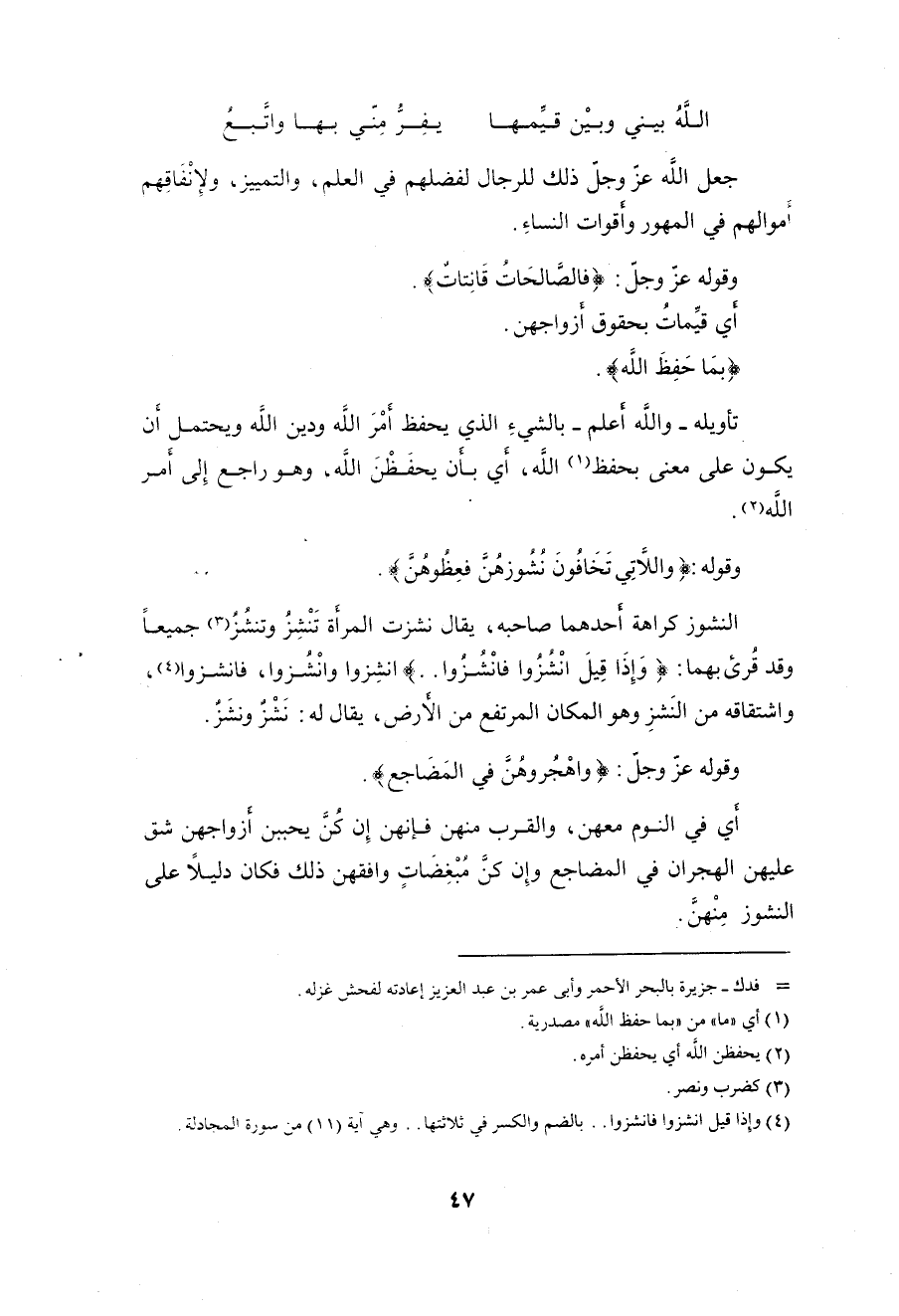 وقوله عزَّ وجلَّ: (وَاهْجُرُوهُنَّ فِي الْمَضَاجِعِ).