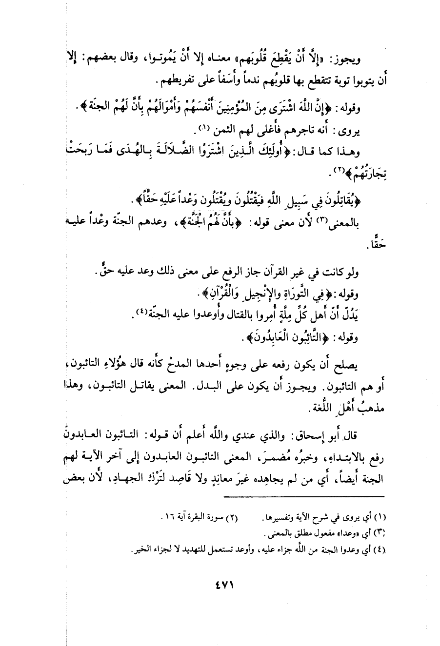المعنى يقاتل التائبون، وهذا مذهبُ أهْلِ اللغة.