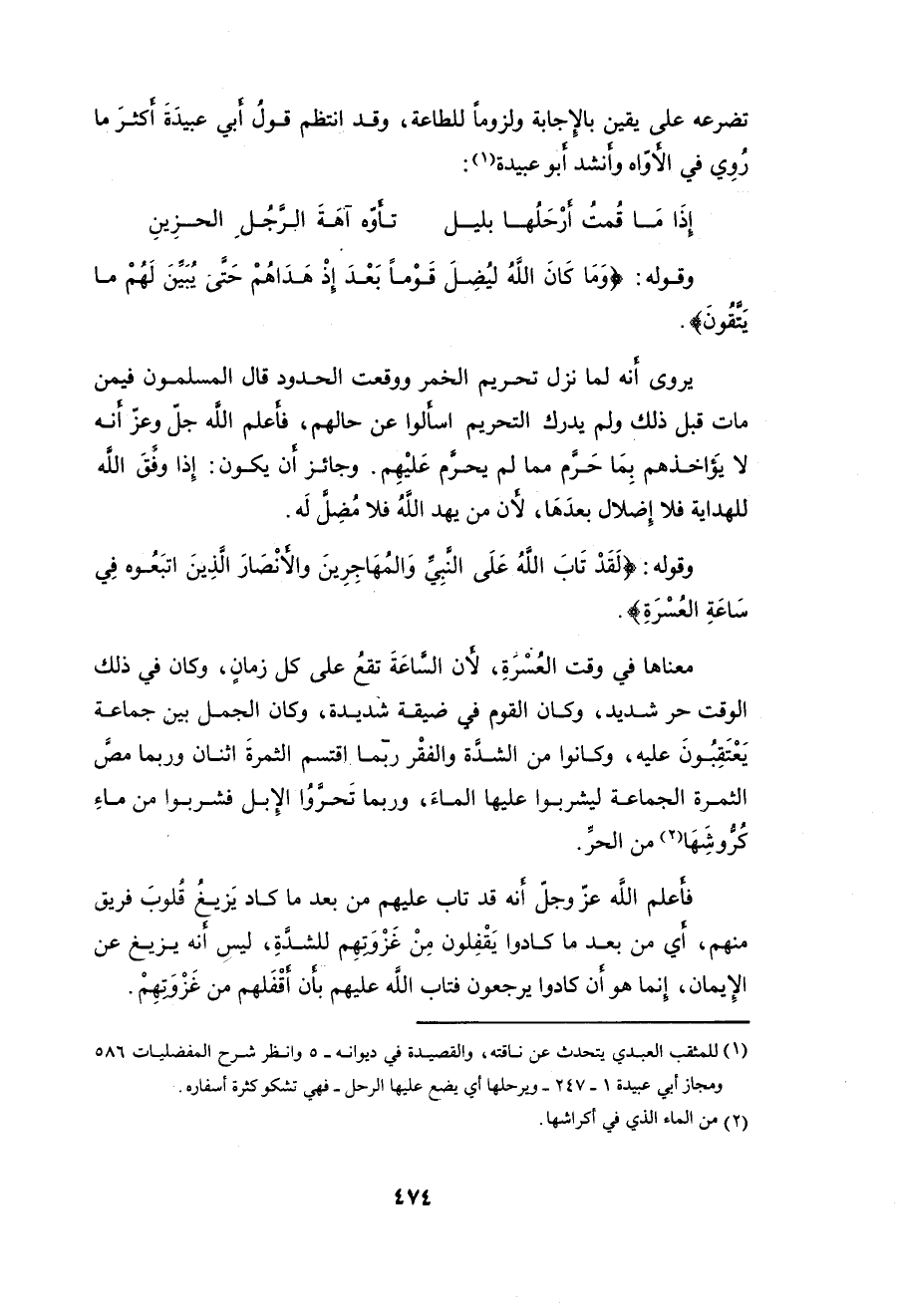 فأعلمَ اللَّهُ عزَّ وجلَّ أنَّه قد تاب عليهم من بعد ما كاد يَزيغُ قُلوبَ فريق