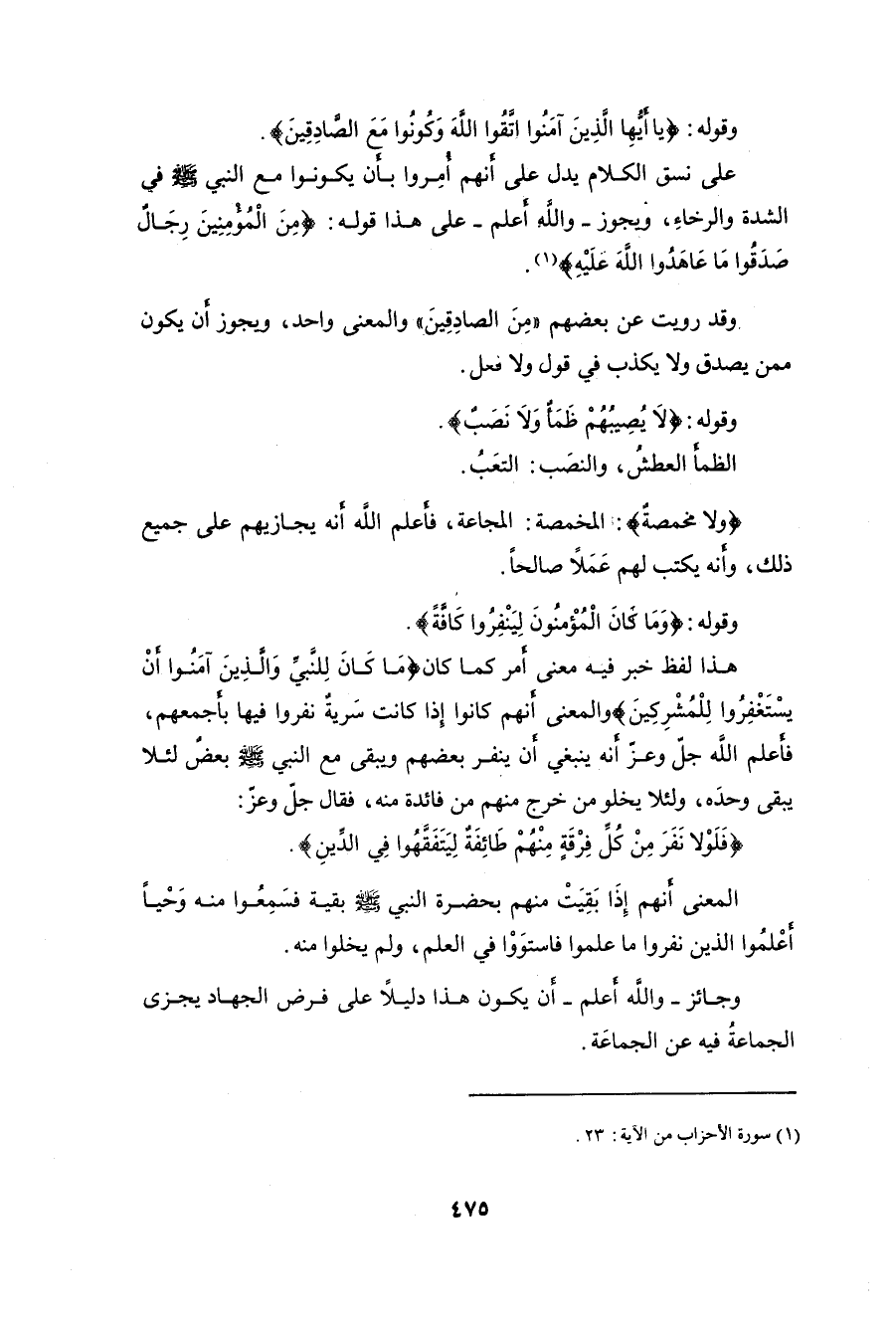 (فَلَوْلَا نَفَرَ مِنْ كُلِّ فِرْقَةٍ مِنْهُمْ طَائِفَةٌ لِيَتَفَقَّهُوا فِي الدِّينِ).