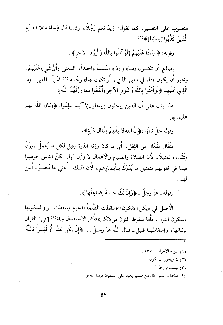 وسكون النون، فأَما سقوط النون من " تكن " فأكثر الاستعمال جاءَ في القرآن بإثباتها، وإِسقاطِها قليل - قال الله عزَّ وجلَّ -: