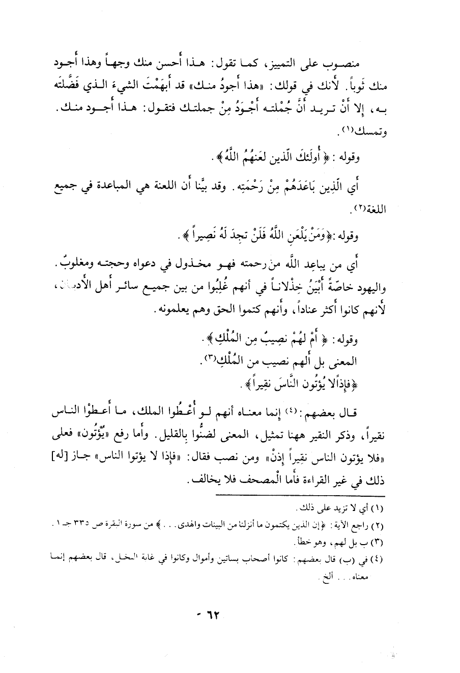 وأما رفع " يُؤْتُونَ" فعلى " فلا يؤتون الناس نقيراً إِذنْ "