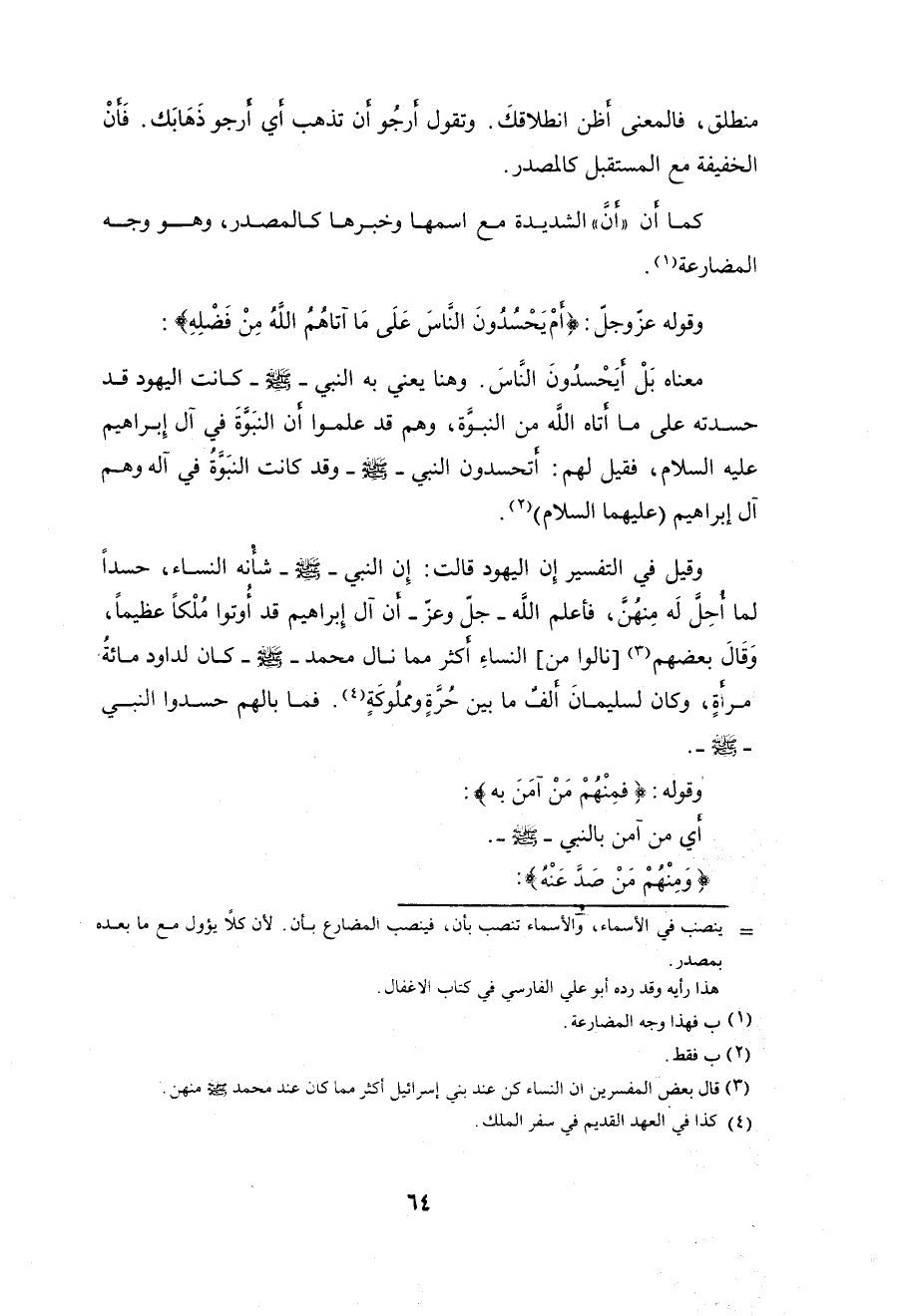 وقوله - عزَّ وجلَّ -: (أَمْ يَحْسُدُونَ النَّاسَ عَلَى مَا آتَاهُمُ اللَّهُ مِنْ فَضْلِهِ فَقَدْ آتَيْنَا آلَ إِبْرَاهِيمَ الْكِتَابَ وَالْحِكْمَةَ وَآتَيْنَاهُمْ مُلْكًا عَظِيمًا (54)