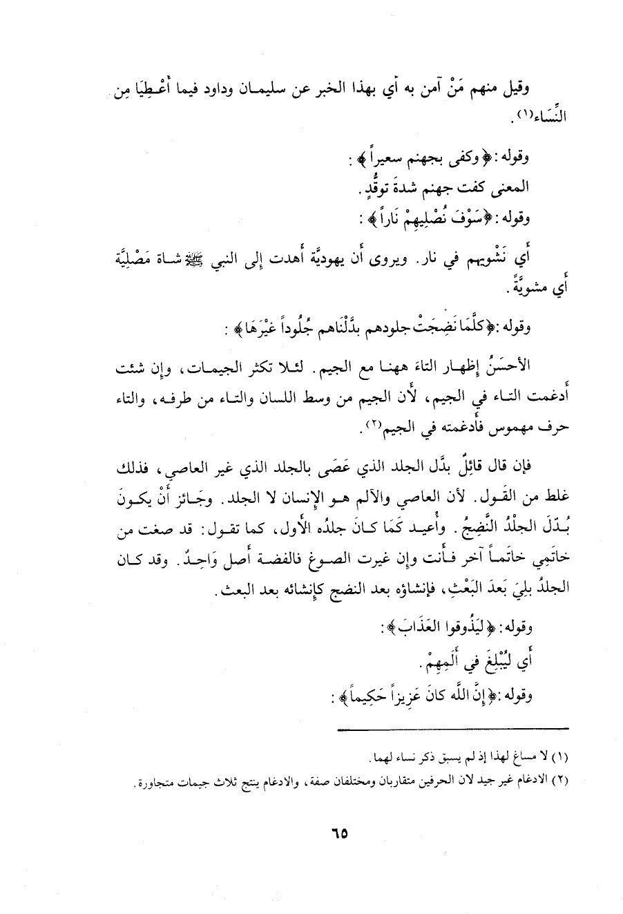 وقوله: (كُلَّمَا نَضِجَتْ جُلُودُهُمْ بَدَّلْنَاهُمْ جُلُودًا غَيْرَهَا)