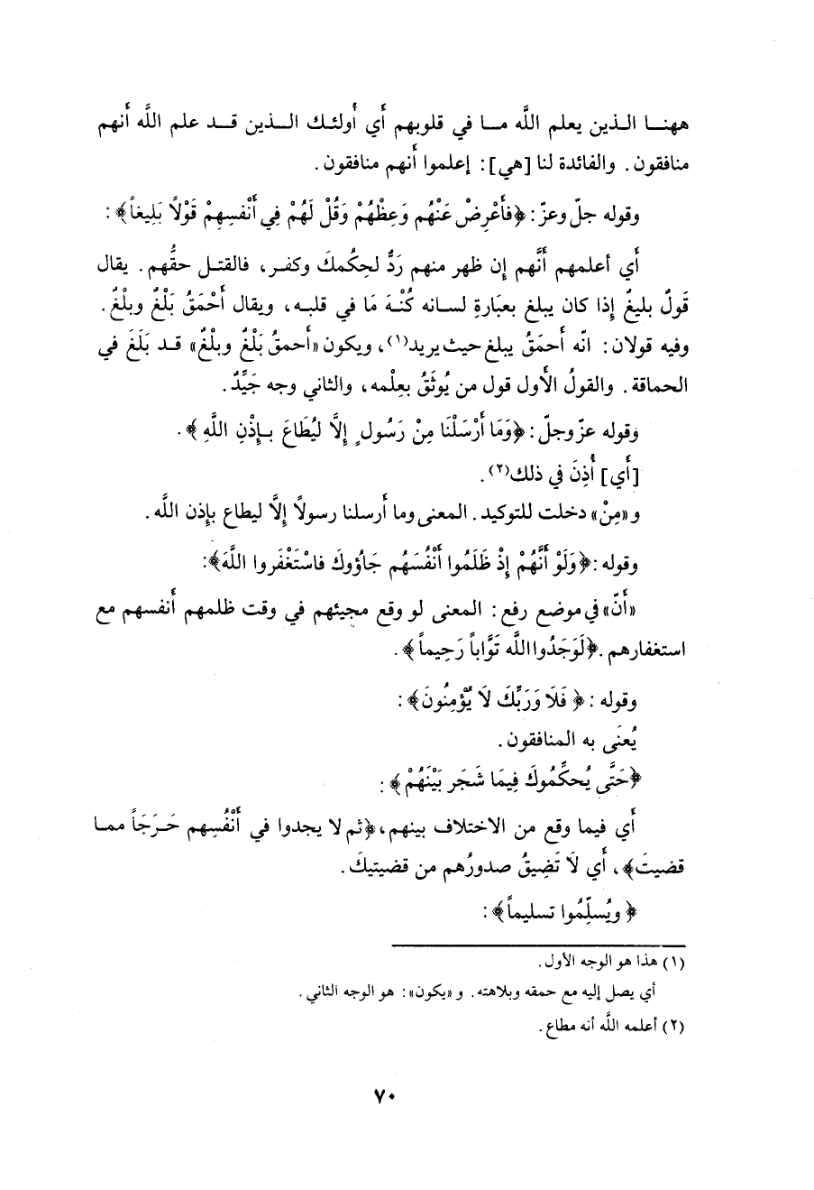 وقوله جلَّ وعزَّ: (فَأَعْرِضْ عَنْهُمْ وَعِظْهُمْ وَقُلْ لَهُمْ فِي أَنْفُسِهِمْ قَوْلًا بَلِيغًا)