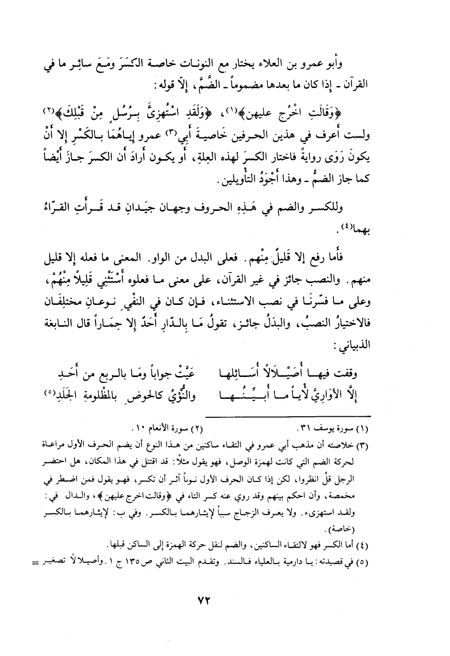 وأبو عمرو بن العلاء يختار مع النونات خاصة الكسَرَ ومَعَ سائِر ما في