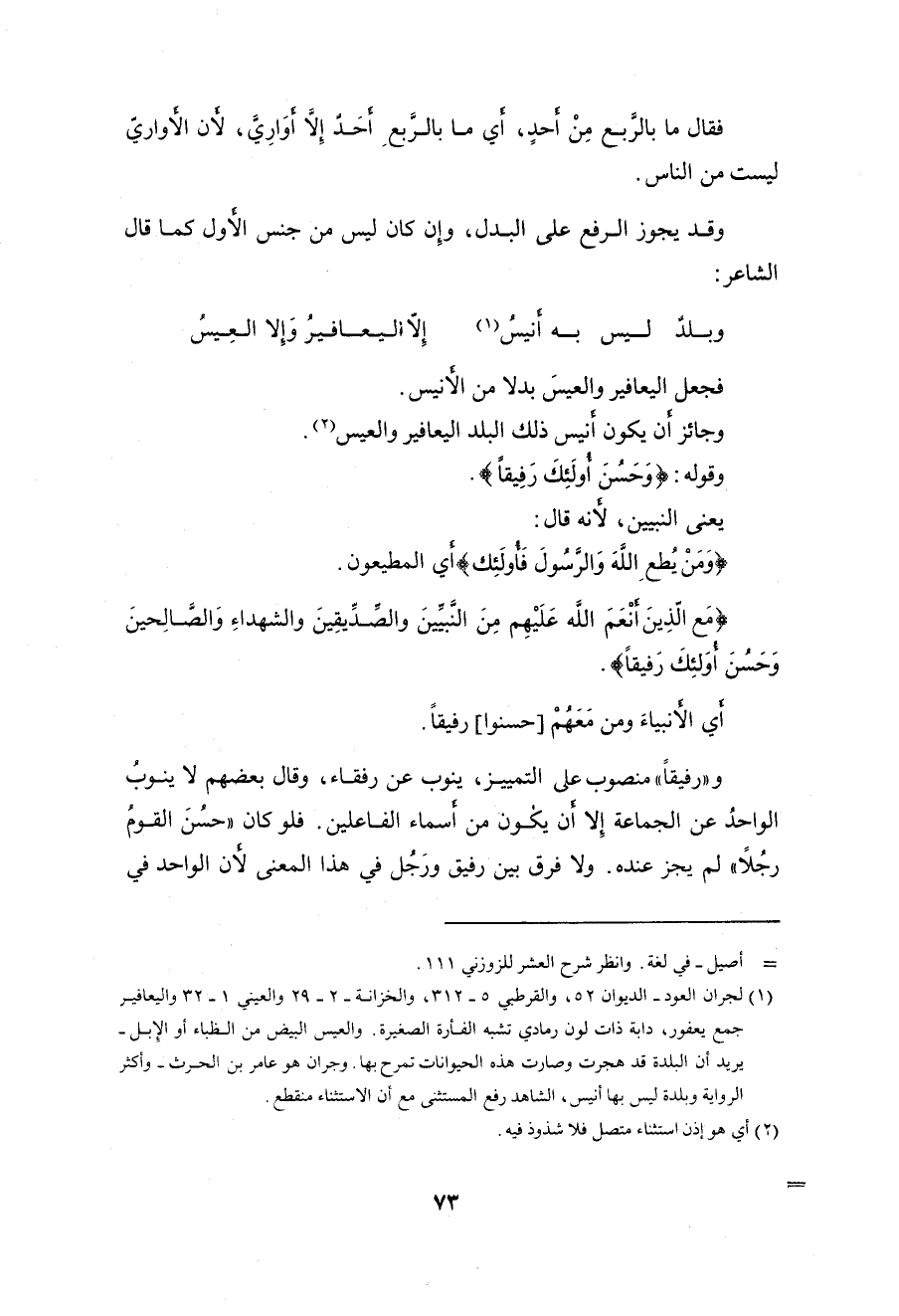 فجعل اليعافير والعيسَ بدلا من الأنيس.
