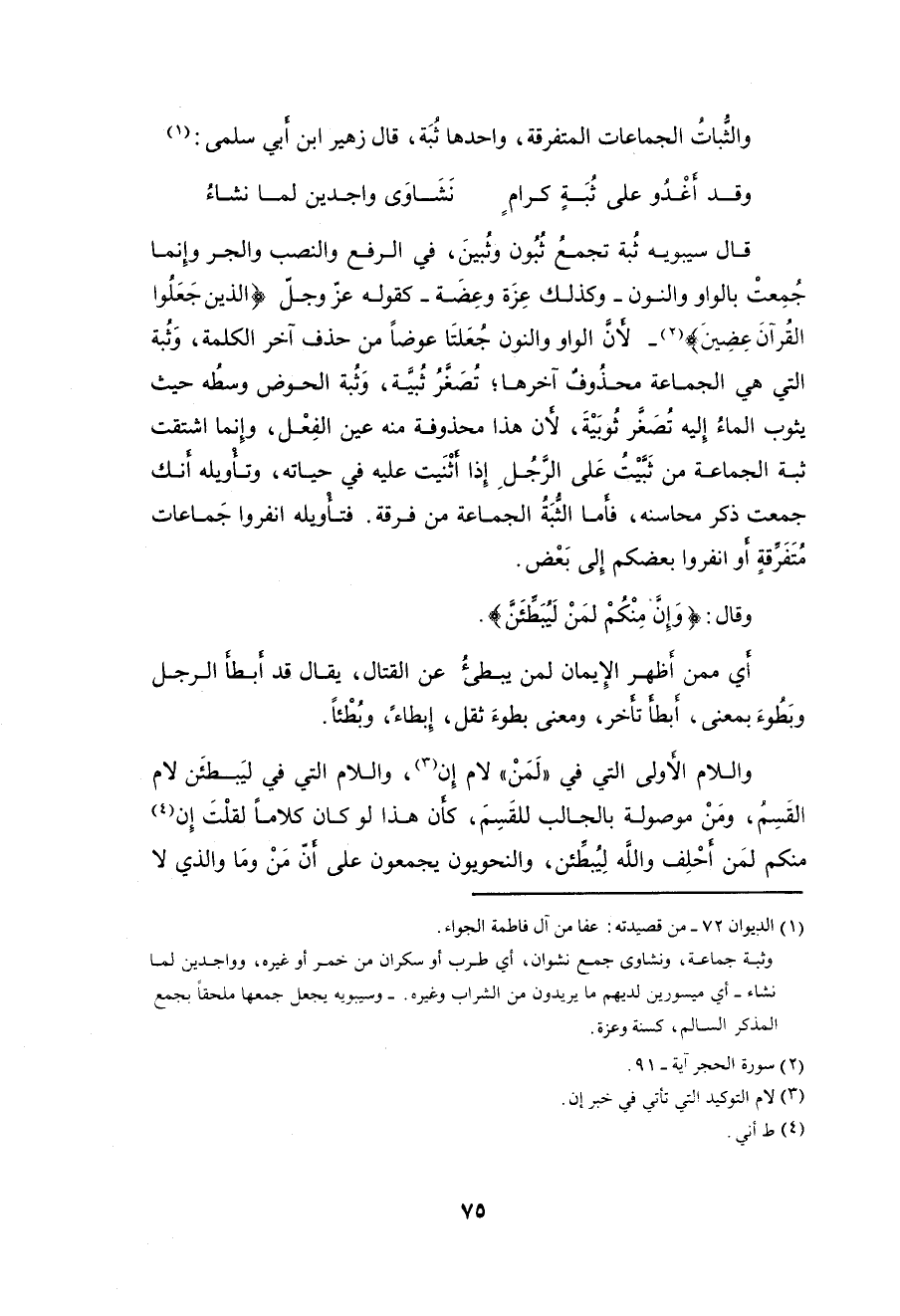 قال سيبويه ثُبة تجمعُ ثُبُون وثُبينَ، في الرفع والنصب والجر وإِنما