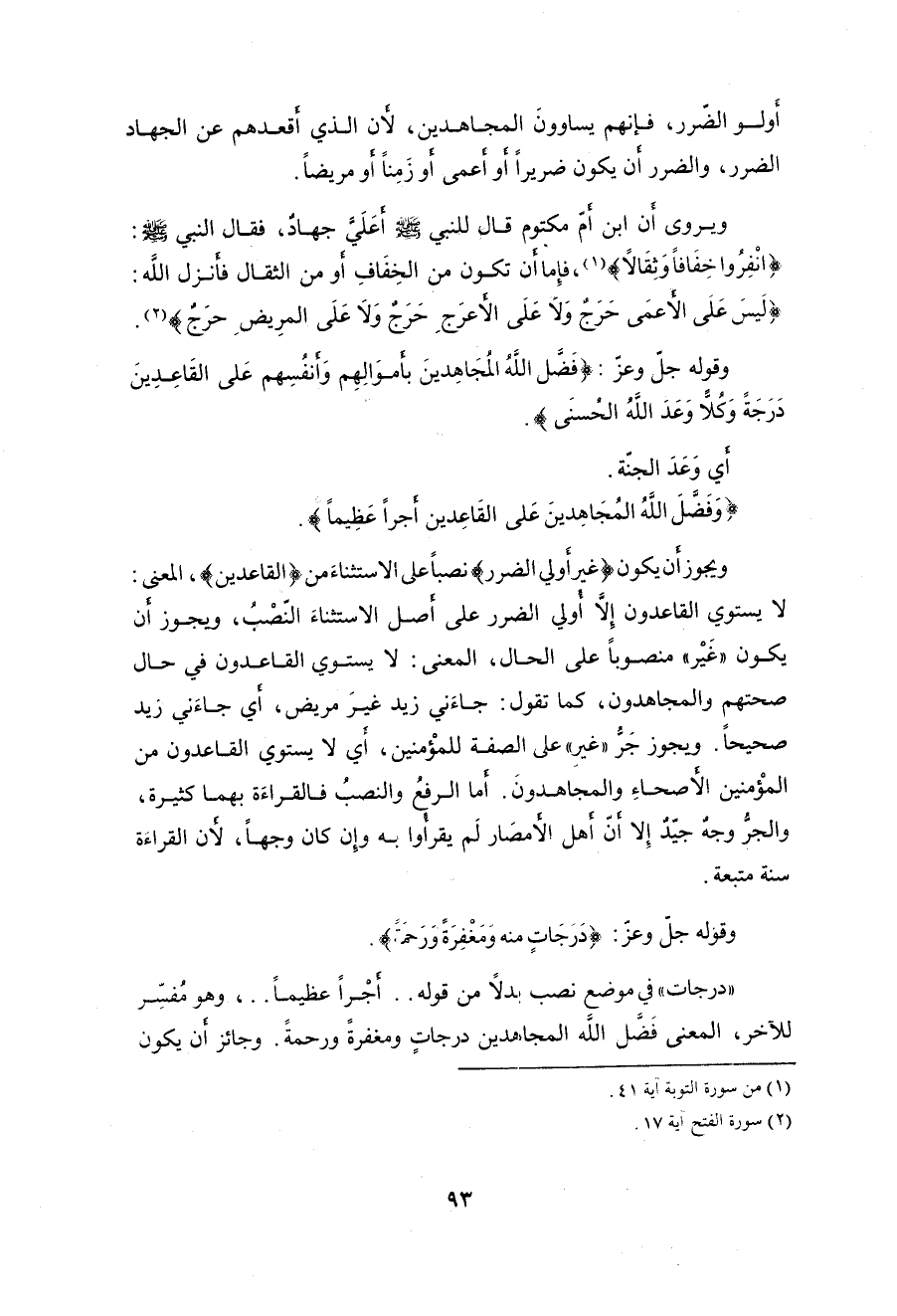ويجوز أن يكون (غيرَ أولي الضرر) نصباً على الاستثناء من (القاعدين).
