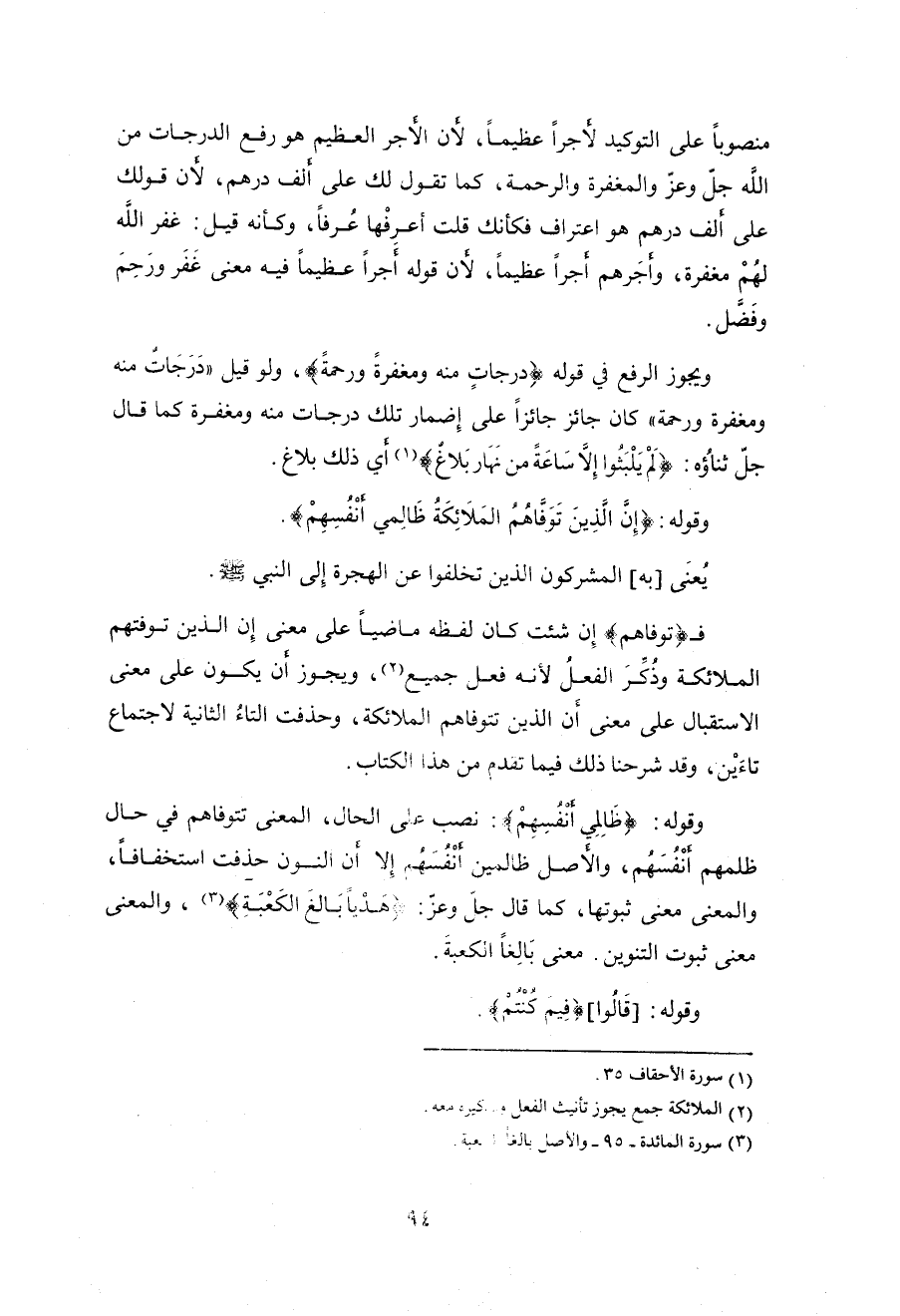 منصوباً على التوكيد لـ (أجراً عظيماً) لأن الأجر العظيم هو رفع الدرجات من اللَّه جلَّ وعزَّ والمغفرة والرحمة، كما تقول لك على ألف درهم، لأن قولك على ألف درهم هو اعتراف فكأنك قلت أعرفْها عُرفاً، وكأنه قيل: غفر اللَّه لهُمْ مغفرة، وأجَرهم أجراً عظيماً، لأن قوله (أجراً عظيماً) فيه معنى غَفَر ورَحِمَ وفَضَّل.