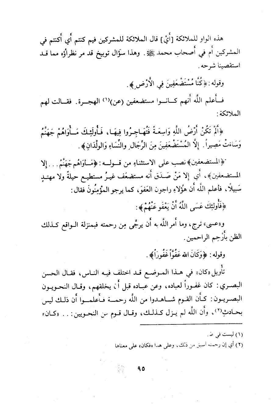 (فَأُولَئِكَ عَسَى اللَّهُ أَنْ يَعْفُوَ عَنْهُمْ وَكَانَ اللَّهُ عَفُوًّا غَفُورًا (99)