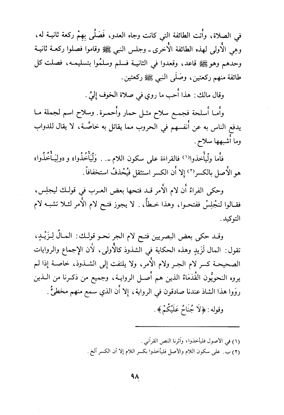 فأمَّا (وَلْيَأْخُذُوا) فالقراءَة على سكون اللام -. . (وَلْيَأْخُذُوا)
